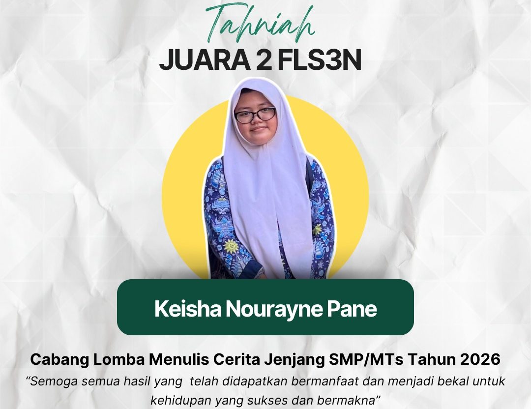SMP Muhammadiyah 10 Yogyakarta kembali mencatat prestasi membanggakan. Siswa atas nama Keisha Nourayni Pane berhasil meraih Juara 2 pada ajang Festival Lomba Seni dan Sastra Siswa Nasional (FLS3N) Tahun 2026 cabang menulis cerita jenjang SMP/MTs.